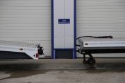 Der Anhänger ist mit einer hydraulisch ausschiebbaren Zugdeichsel in einer Gesamtlänge von 136,5cm ausgestattet. Die Zugdeichsel lässt sich einschieben. Dadurch verringert sich die Gesamtlänge des Anhängers um 100cm. Dies ermöglicht den Transport des Anhänger auf dem Plateau des Zugfahrzeuges.