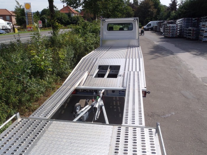 Die Reihe EP4 wurde entwickelt für Fahrzeuge mit einem max. Gesamtgewicht von 5,0t. und ist ein extrem flexibles Produkt mit einfachen Lösungen, schnellen Be- und Entladevorgängen. Neu ist hier der Ladeboden aus ALU-Lochblech, der ein effizientes Verzurren ermöglicht. Die Mitte ist mit Aluriffelblech geschlossen.Selbstverständlich liefern wir auch den passenden Anhänger, dieser kann mit einer Überfahrtechnik passend zum Zugfahrzeug bestückt werden.