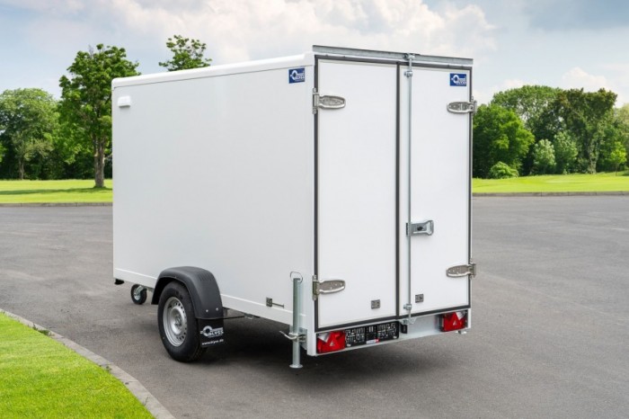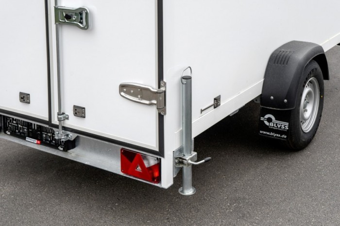 Abbildungen müssen nicht der Standard-Ausstattung entsprechen, technische Änderungen (z.B. Reifengrößen) vorbehalten. Technische DatenAnhängertyp | FS1330/180HL | Gesamtgewicht | 1300kg | Nutzlast | 797kg | Innenmaße | L: 305cm, B: 159cm, H: 180cm | Ladehöhe | ca. 53cm | Boden | Multiplex-Holzboden | Rahmen | selbsttragender Rahmen | Elektrik | 13-polig, 12 V | Reifen | 185R14C | Achsenhersteller | AL-KO oder KNOTT | Anzahl der Achsen | 1 | Gebremste Achse | Ja | Stützrad serienmäßig | Ja | Doppelflügeltür | mit Drehstangenverschluss, abschließbar | Wände | Sandwich, 25 mm | Zurrleisten | je Seite 1 | Seitenwandlüfter | je Seite 1 | Heckstützen | Ja | Unterlegkeile | 2 | Stoßdämpferfahrwerk | Ja + 100km/h Zulassung | Verzurrösen | verstellbare, je Seite 3 |