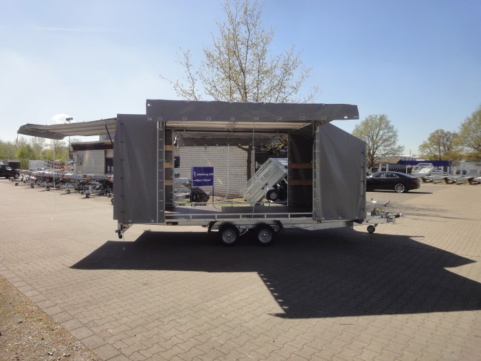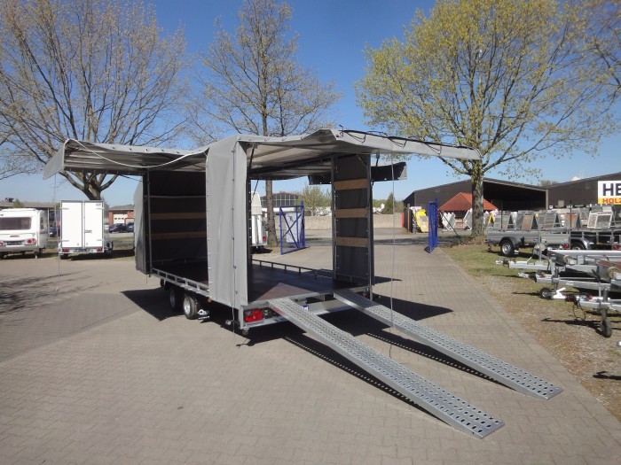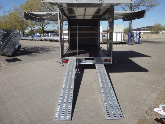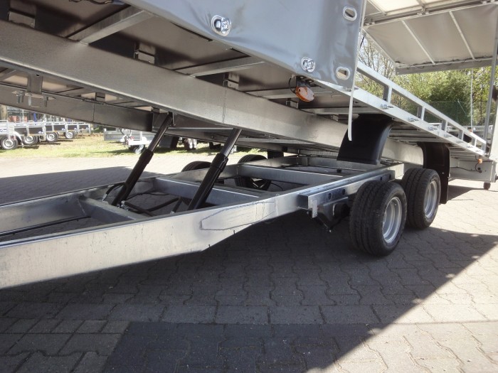 Winkel im angekippten Zustand: - Ladefläche ca. 9,4° bzw. ca. 16,5% - Rampen (250 cm) ca. 8,0° bzw. ca. 14,0% Optional ist auch eine Heckklappe zum Überfahren von Fahrzeugen mit entsprechender Bodenfreiheit möglich. Sondermaße auf Anfrage zzgl. Fz-Brief/ COC-Bescheinigung 39,00 € Alle Preise inkl. MwSt. Abbildungen müssen nicht der Standard-Ausstattung entsprechen, technische Änderungen (z.B. Reifengrößen) vorbehalten. Netto: 7865.55 € |