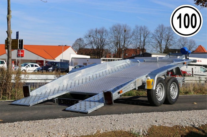 Alle Preise inkl. 19% MwST. Technische DatenAnhängertyp | Monza 100+ | Gesamtgewicht | 2700kg | Nutzlast | 2045kg | Innenmaße | L: 450cm, B: 200cm, H: 20cm | Außenmaße | L: 615cm, B: 254cm, H: 75cm | Ladehöhe | ca. 55cm | Boden | Standschienen aus Lochblech, Mitte mit Riffelblech geschlossen | Verzurrpunkte | Lochblech | Rahmen | Stahl geschweißt, Tauchbad feuerverzinkt | Elektrik | 13-polig, 12V | Reifen | 165R13C | Achsenhersteller | AL-KO oder KNOTT | Anzahl der Achsen | 2 | Gebremste Achse | Ja | Stützrad serienmäßig | Ja | Stoßdämpferfahrwerk | Ja + 100km/h Zulassung | Seilwinde serienmäßig | AL-KO | Unterlegkeile | 2 |