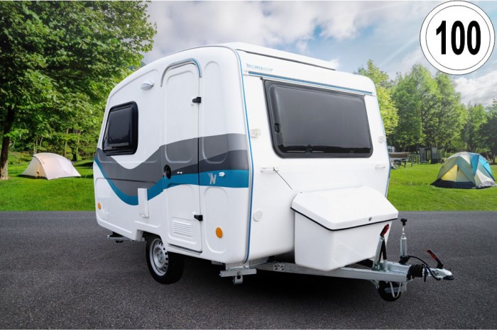 Im Jahr 2011 feierte diese Baureihe vom Traditionshersteller NIEWIADÓW den 40. Geburtstag. Dies bedeutet ein perfektes und ausgereiftes Fahrzeug mit den neusten Komponenten von namenhaften Herstellern der Branche. N126E, dieser kleine Wohnwagen überzeugt nicht nur durch sein geringes Gesamtgewicht von nur 750 KG, sondern kann eben auch von jedem kleinen PKW gezogen werden. Das geringe Gesamtgewicht und die schnittige Form des Fahrzeugs ermöglichen einen geringen Benzinverbrauch. Trotz seiner kleinen Abmessungen haben bis zu 3 Personen bequem Platz. Die Karosserie ist aus unverwüstbarem GFK. Der Wohnwagen kann je nach Bedarf mit einer Truma Heizung sowie diversem Zubehör ausgestattet werden. Diese Modelle der Baureihe N126E begeistern vor allem junge Leute bzw. Neueinsteiger.