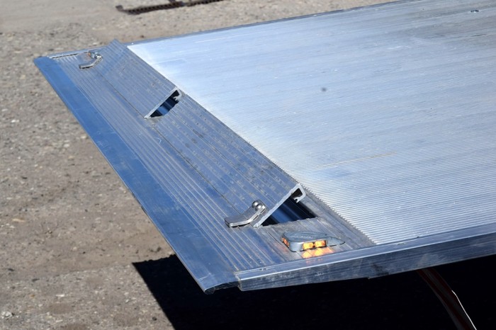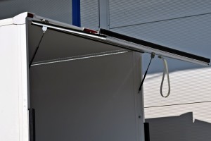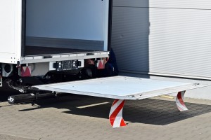 Die leichten Ladebordwände an Motorwagen und am Anhänger verfügen über jeweils 750kg Tragkraft. BLYSS bietet hier verschiedene Fabrikate auf Kundenwunsch an. Zusätzliche hydraulische Stützen gewähren perfekte Standsicherheit während des Ladevorgangs.