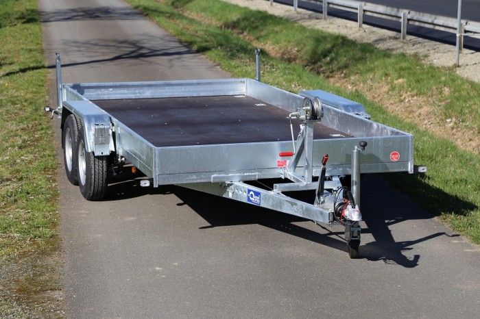 PDFA3004BHT Frachtliner Autotransportanhänger• Fahrzeugtransporter• Tieflader • Tandemachser • Eigengewicht: 785 kg • Elektrik: 13-polig, 12V • Stahlrahmen geschweißt,komplett Tauchbad feuerverzinkt • V-Deichsel • Kugelkopfkupplung • Ladeboden Multiplex-Holzboden • Verzurrösen im Ladenboden versenkt • Bordwände Stahl • Auffahrschienen 180 cm, unter der Ladefläche • Seilwinde , Stoßdämpferfahrwerk Ladehöhe: ca. 52 cm