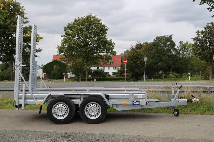 PDFB30350/180 Baumaschinentransporter• Maschinentransporter• Tieflader • Tandemachser • Eigengewicht: 800 kg • Elektrik: 13-polig, 12V • Stahlrahmen geschweißt,komplett Tauchbad feuerverzinkt • V-Deichsel • Kugelkopfkupplung • Ladeboden Multiplex-Holzboden • Verzurrösen im Ladenboden versenkt • Bordwände Stahl • Stahlkotflügel, begehbar • Schaufelablage • Heckstützen • Ladehöhe: ca. 54 cm • Auffahrrampen 200 cm zzgl. Fz-Brief/ COC-Bescheinigung 36,00 € Alle Preise inkl. 19% MwST.