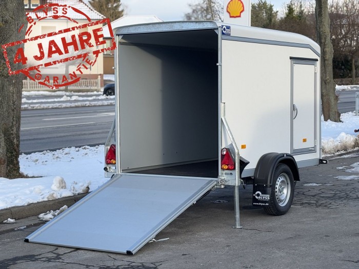 Abbildungen müssen nicht der Standard-Ausstattung entsprechen, technische Änderungen (z.B. Reifengrößen) vorbehalten. Technische DatenAnhängertyp | Debon Roadster C255 | Gesamtgewicht | 750kg | Nutzlast | 400kg | Innenmaße | L: 251cm, B: 125cm, H: 156cm | Außenmaße | L: 370cm, B: 172cm, H: 205cm | Ladehöhe | ca. 34cm | Boden | Multiplex-Holzboden | Verzurrpunkte | 4 Zurrösen innen seitlich auf Boden aufgeschraubt | Rahmen | stabiler verschweißter und tauchbad-feuerverzinkter Rahmen | Elektrik | 12V - Stecker 13 polig - Rückfahrleuchte | Reifen | 13 Zoll | Achsenhersteller | KNOTT | Anzahl der Achsen | 1 | Gebremste Achse | Nein | Stützrad serienmäßig | Ja | Seitenwände | Multiplex | Poly-Front-Dach Kombination | in aerodynamischer Form | Heckrampe | -Tür Kombination | Heckrampe Aluminium | rutschhemmend innen, dreh-/schwenkbar, mit Gashebern | Rückleuchteneinheiten | geschützt in Seitenstrebe montiert | Seitentür | in Fahrtrichtung rechts | Lichte Maße der Seitentür | 102 x 61 cm |