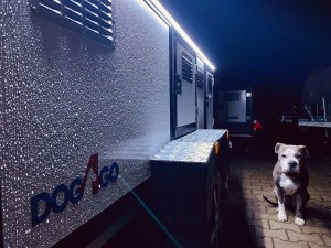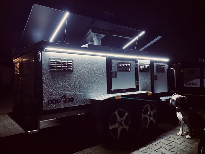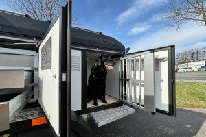 Dach | Zu öffnendes mit Gasdruckfelder mit Hundeleinehalter vor montiert und Dachreling |