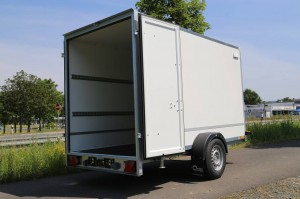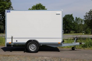PDFF1330HD Kofferanhänger• Kofferanhänger• Tieflader • Einachser • Eigengewicht: 555 kg • Elektrik: 13-polig, 12V • Stahlrahmen geschweißt,komplett Tauchbad feuerverzinkt • V-Deichsel • Kugelkopfkupplung • Ladeboden Multiplex-Holzboden • Verzurrösen im Ladenboden versenkt • je Seite zwei Zurrleisten • Multiplex-Kofferaufbau • Doppelflügeltür mit Drehstangenverschluss • Innenverkleidung weiß oder grau • Gummifederachsen • Heckstützen • Unterlegkeile • Stoßdämpferfahrwerk + 100km/h Zulassung • Seitenwandlüfter