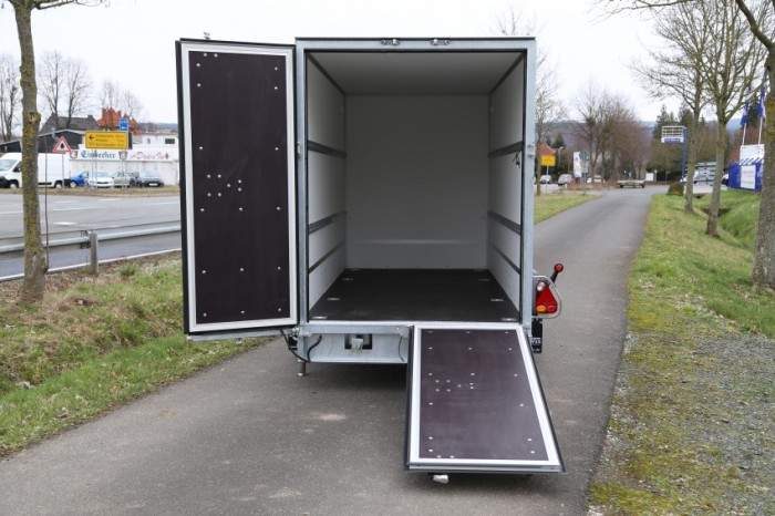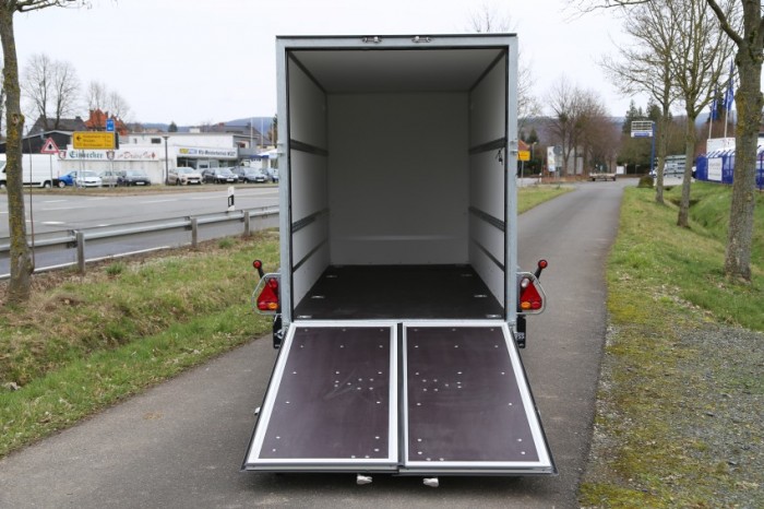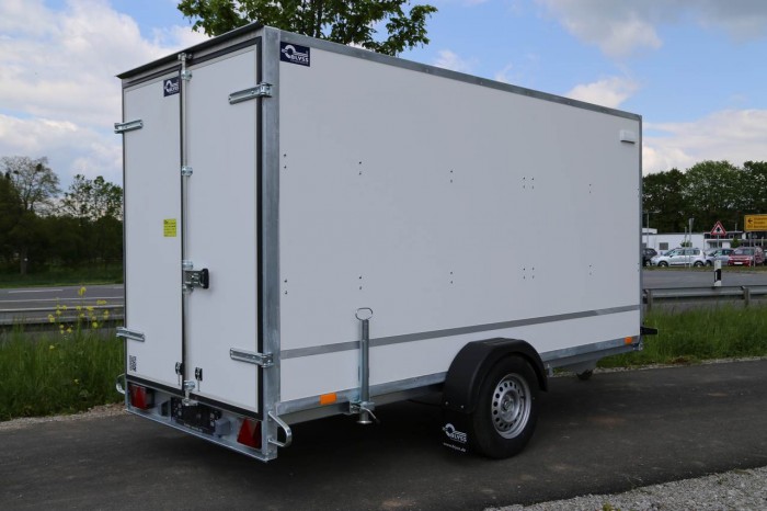 PDFF1336HD Kofferanhänger• Kofferanhänger• Tieflader • Einachser • Eigengewicht: 660 kg • Elektrik: 13-polig, 12V • Stahlrahmen geschweißt,komplett Tauchbad feuerverzinkt • V-Deichsel • Kugelkopfkupplung • Ladeboden Multiplex-Holzboden • Verzurrösen im Ladenboden versenkt • je Seite zwei Zurrleisten • Multiplex-Kofferaufbau • Doppelflügeltür mit Drehstangenverschluss • Innenverkleidung weiß oder grau • Gummifederachsen • Heckstützen • Unterlegkeile • Stoßdämpferfahrwerk + 100km/h Zulassung • Seitenwandlüfter
