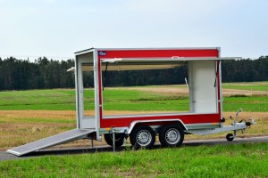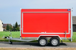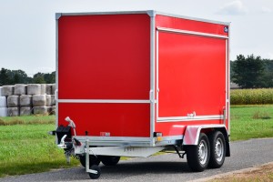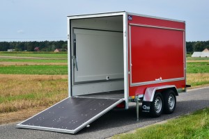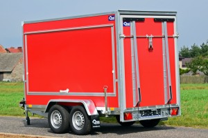 Technische DatenAnhängertyp | F2030HTD rot mit Heck- und Seitenklappen | Gesamtgewicht | 2000kg | Nutzlast | 1350kg | Innenmaße | L: 305cm, B: 146cm, H: 180cm | Außenmaße | L: 460cm, B: 202cm, H: 233cm | Ladehöhe | 50cm | Boden | Multiplex-Holzboden | Verzurrpunkte | je Seite 3 | Rahmen | Stahlrahmen geschweißt, komplett Tauchbad feuerverzinkt | Elektrik | 13-Polig, 12V | Reifen | 185/70R13 | Achsenhersteller | AL-KO oder KNOTT | Anzahl der Achsen | 2 | Gebremste Achse | Ja | Stützrad serienmäßig | Ja | Wände | Mehrschichtleimholz in rot | Heckklappe | 1, abschließbar | Seitenklappe | 2, links und rechts, abschließbar | Heckstützen | Ja | Unterlegkeile | 2 | Stoßdämpferfahrwerk | Ja + 100km/h Zulassung |