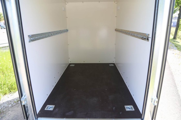Alle Preise inkl. 19% MwST. Technische DatenAnhängertyp | F7520D | Gesamtgewicht | 750kg | Nutzlast | 400kg | Innenmaße | L: 204cm, B: 115cm, H: 150cm | Außenmaße | L: 326cm, B: 170cm, H: 205cm | Ladehöhe | 53cm | Boden | Multiplex-Holzboden | Verzurrpunkte | je Seite 2 | Rahmen | Stahlrahmen geschweißt,komplett Tauchbad feuerverzinkt | Reifen | 165/70R13 | Achsenhersteller | AL-KO oder KNOTT | Anzahl der Achsen | 1 | Gebremste Achse | nicht gebremst | Stützrad serienmäßig | Ja | Tür-Lademaß | B: 110cm, H: 143cm | Doppelflügeltür | mit Drehstangenverschluss, abschließbar | Wände | Mehrschichtleimholz in weiß | Unterlegkeile | 2 | Zurrleisten | je Seite 1 | Seitenwandlüfter | je Seite 1 | Stecker | 7-polig, 12V | Heckstützen | Ja | Stoßdämpferfahrwerk | Ja + 100km/h Zulassung |