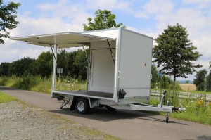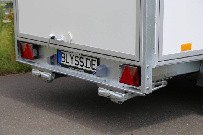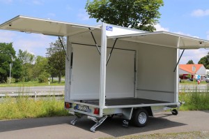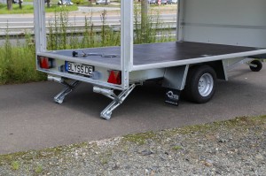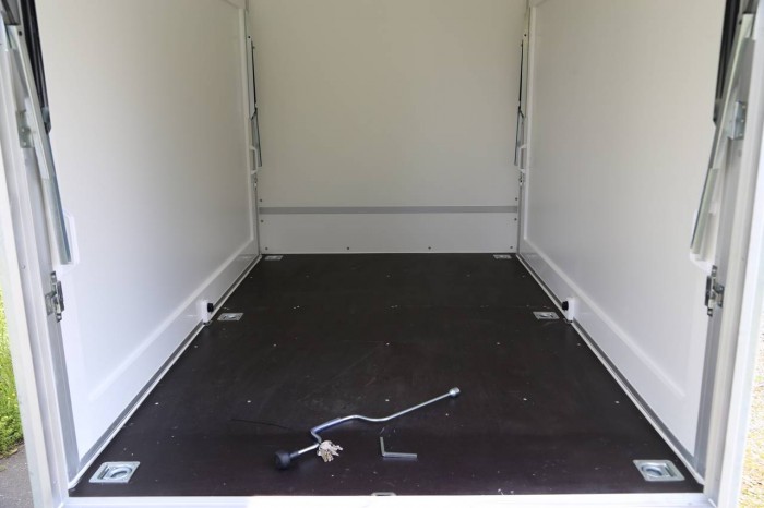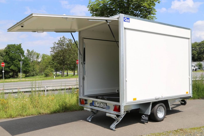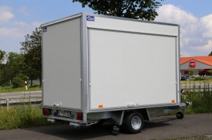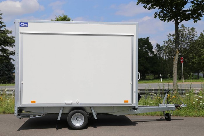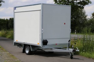 Technische DatenAnhängertyp | FC1326HD KOFFERANHÄNGER mit 3 Klappen | Gesamtgewicht | 1300kg | Nutzlast | 745kg | Innenmaße | L: 260cm, B: 160cm, H: 180cm | Außenmaße | L: 415cm, B: 173cm, H: 240cm | Ladehöhe | 60 cm | Boden | Multiplex-Holzboden | Verzurrpunkte | je Seite 4 | Rahmen | Stahlrahmen geschweißt, komplett Tauchbad feuerverzinkt | Elektrik | 13-Polig, 12V | Reifen | 195/55R10C | Achsenhersteller | AL-KO oder KNOTT | Anzahl der Achsen | 1 | Gebremste Achse | Ja | Stützrad serienmäßig | Ja | Wände | Mehrschichtleimholz in weiß | Seitenklappe | 2, links und rechts, abschließbar | Heckklappe | 1, abschließbar | Heckstützen | Ja | Unterlegkeile | 2 | Stoßdämpferfahrwerk | Ja + 100km/h Zulassung |
