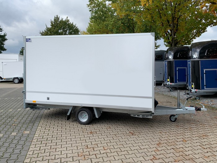 Technische DatenAnhängertyp | FC1336HD | Gesamtgewicht | 1300kg | Nutzlast | 450kg | Innenmaße | L: 360cm, B: 180cm, H: 180cm | Außenmaße | L:515cm, B: 185cm, H: 240cm | Ladehöhe | 60 cm | Boden | Multiplex - Holzboden | Verzurrpunkte | je Seite 4 | Rahmen | Stahlrahmen geschweißt, komplett Tauchbad feuerverzinkt | Elektrik | 13-polig, 12V | Reifen | 195/55R10C | Achsenhersteller | AL-KO oder KNOTT | Anzahl der Achsen | 1 | Gebremste Achse | Ja | Stützrad serienmäßig | Ja | Tür - Lademaß | B: 154cm, H: 174cm | Wände | Mehrschichtleimholz in weiß | Doppelflügeltür | mit Drehstangenverschluss, abschließbar | Stoßdämpferfahrwerk | Ja + 100 km/h Zulassung | Zurrleisten | je Seite 2 | Seitenwandlüfter | je Seite 1 | Heckstützen | Ja | Unterlegkeile | 2 |