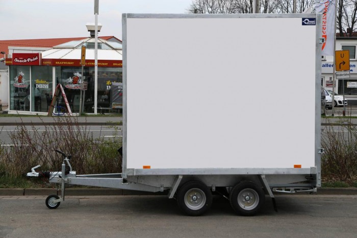 Technische DatenAnhängertyp | FC2726HTD KOFFERANHÄNGER HOCHLADER | Gesamtgewicht | 2700kg | Nutzlast | 1830kg | Innenmaße | L: 260cm, B: 160cm, H: 180cm | Außenmaße | L: 416cm, B: 175cm, H: 240cm | Ladehöhe | ca. 60cm | Boden | Multiplex-Holzboden | Verzurrpunkte | je Seite 3 | Rahmen | Stahl geschweißt, Tauchbad feuerverzinkt | Elektrik | 13-Polig, 12V | Reifen | 195/55R10C | Achsenhersteller | AL-KO oder KNOTT | Anzahl der Achsen | 2 | Gebremste Achse | Ja | Stützrad serienmäßig | Ja | Tür-Lademaß | L: 142cm, H: 174cm | Doppelflügeltür | mit Drehstangenverschluss, abschließbar | Wände | Mehrschichtleimholz in weiß | Stoßdämpferfahrwerk | Ja + 100km/h Zulassung | Zurrleisten | je Seite 2 | Seitenwandlüfter | je Seite 1 | Heckstützen | Ja | Unterlegkeile | 2 |