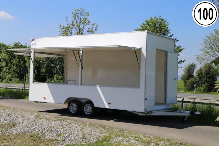 PDFH20522HTL VerkaufsanhängerVK Aufbau - Vollisolierter Kofferaufbau -LEERWAGEN- - 2 Große Verkaufsklappen in der rechten Seitenwand mit Gasfederstützen und Zusatzsicherung - Außenbeplankung glatt (Laminatwände) Fahrgestell: - Fahrgestell sowie Rahmen feuerverzinkt - Mechanische Knott Auflaufbremse mit Rückfahrautomatik - Höhenverstellbares Buglaufrad - Vier verzinkte Ausdrehstützen - Trittfester Fußboden Aufbau: - 12 V Elektrik entsprechend der StvZO einschließlich 13-poligem Stecker und Rückfahrscheinwerfer - Vollisolierter Kofferaufbau - Innenverkleidung in weiß beschichtet - Serienmäßig mit Seitenwandlüfter - Breite Eingangstüre in der Vorderwand - Gasschranktür in Fahrtrichtung links hinten - Sicherheitsschloss und 2 Schlüssel - 2 Große Verkaufsklappen in der rechten Seitenwand mit Gasfederstützen und Zusatzsicherung - Innenhöhe 230 cm Technische Daten
