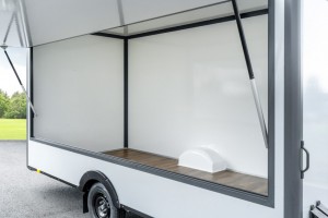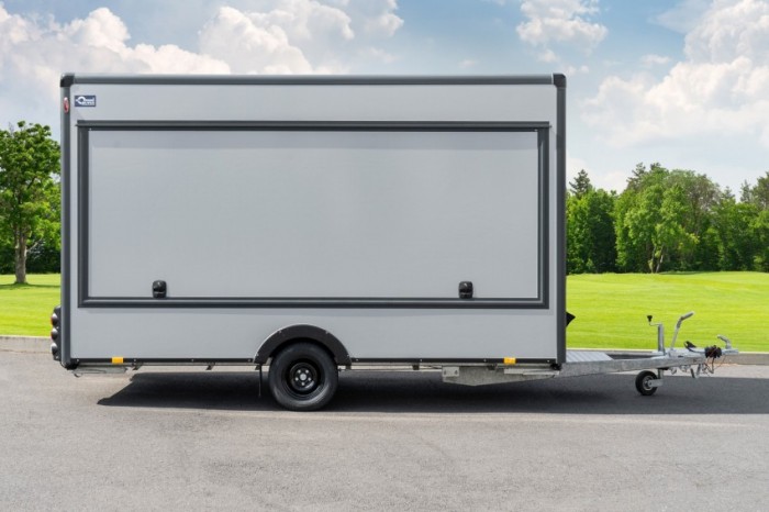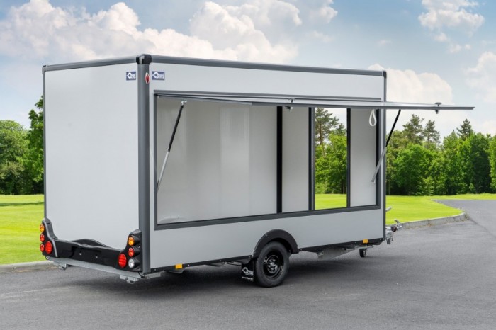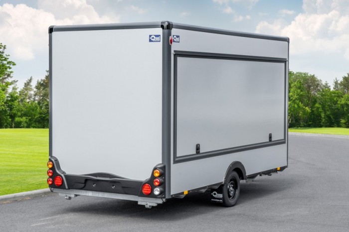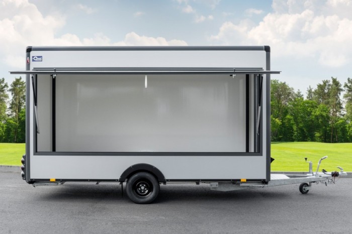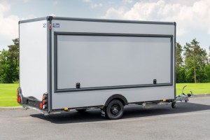 Abbildungen müssen nicht der Standard-Ausstattung entsprechen, technische Änderungen (z.B. Reifengrößen) vorbehalten. Technische DatenAnhängertyp | Verkaufswagen HB18421HL grau/anthrazit | Gesamtgewicht | 1800kg | Nutzlast | 1020kg | Innenmaße | L: 420cm, B: 200cm, H: 230cm | Außenmaße | L: 610cm, B: 210cm, H: 268cm | Boden | Trittfester PVC Fußboden | Rahmen | Tauchbad feuerverzinkt | Elektrik | 13-Polig, 12V | Reifen | 195/50R13C | Achsenhersteller | AL-KO oder KNOTT | Anzahl der Achsen | 1 | Gebremste Achse | Ja | Stützrad serienmäßig | Ja | Ausdrehstützen | 4, verzinkt | Außenbeplankung | Laminatwände, glatt in Grau | Innenverkleidung | Laminatwände, glatt in Weiß | Verkaufsklappe | in der rechten Seitenwand mit Gasfederstützen und Zusatzsicherung | Eingangstüre | in der Vorderwand | Seitenwandlüfter | serienmäßig | Sicherheitsschloss | Ja + 2 Schlüssel |