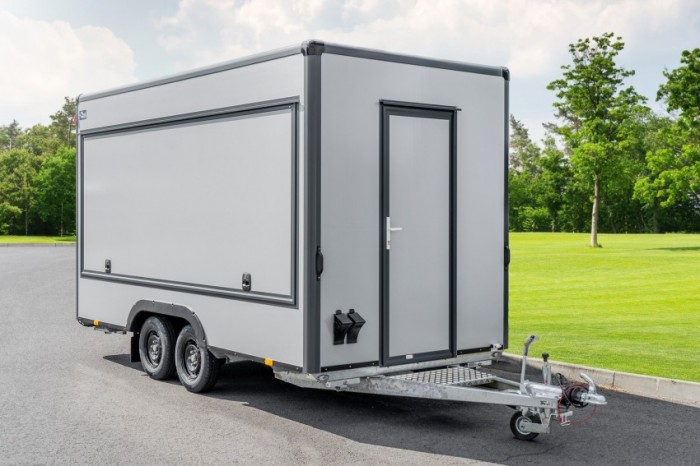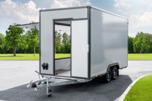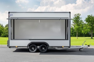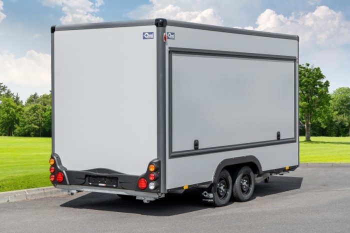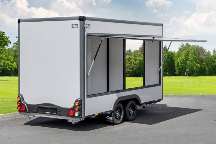 Abbildungen müssen nicht der Standard-Ausstattung entsprechen, technische Änderungen (z.B. Reifengrößen) vorbehalten. Technische DatenAnhängertyp | HB20421HL grau/anthrazit VERKAUFSWAGEN | Gesamtgewicht | 2000kg | Nutzlast | 1164kg | Innenmaße | L: 420cm, B: 200cm, H: 230cm | Außenmaße | L: 610cm, B: 210cm, H: 276cm | Boden | Trittfester PVC Fußboden | Rahmen | Tauchbad feuerverzinkt | Elektrik | 13-Polig, 12V | Reifen | 165/85R13C | Achsenhersteller | AL-KO oder KNOTT | Anzahl der Achsen | 2 | Gebremste Achse | Ja | Stützrad serienmäßig | Ja | Ausdrehstützen | 4, verzinkt | Außenbeplankung | Laminatwände, glatt in Grau | Innenverkleidung | Laminatwände, glatt in Weiß | Verkaufsklappe | in der rechten Seitenwand mit Gasfederstützen und Zusatzsicherung | Einganstüre | in der Vorderwand | Seitenwandlüfter | serienmäßig | Sicherheitsschloss | Ja + 2 Schlüssel |