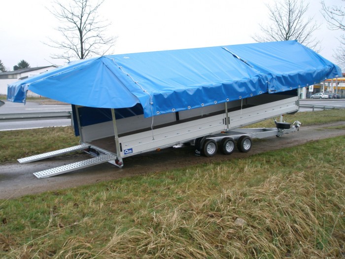 Optional ist auch eine Heckklappe zum Überfahren von Fahrzeugen mit entsprechender Bodenfreiheit möglich. Sondermaße auf Anfrage