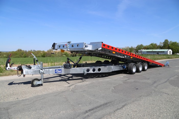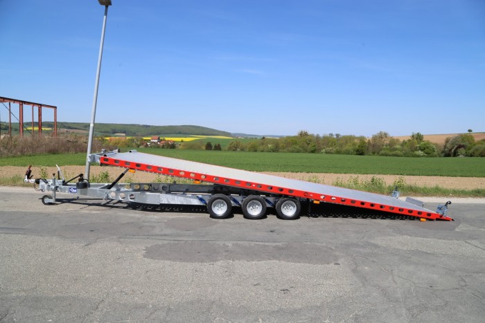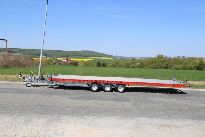 Technische DatenAnhängertyp | MERKUR XL PRO | Gesamtgewicht | 3500kg | Nutzlast | 2470kg | Innenmaße | L: 655cm, B: 205cm | Außenmaße | L: 920cm, B: 210cm, H: 65cm | Ladehöhe | ca. 58cm | Boden | Aluminiumprofile | Verzurrpunkte | Lochblech | Rahmen | Stahl geschweißt, Tauchbad feuerverzinkt | Elektrik | 13-Polig, 12V | Reifen | 195/55R10 | Achsenhersteller | AL-KO | Anzahl der Achsen | 3 | Gebremste Achse | Ja | Stützrad serienmäßig | Ja | Antischlingerkupplung | AL-KO AKS 3504 | Seilwinde serienmäßig | AL-KO | Stoßdämpferfahrwerk | inkl. 100 km/h Zulassung | Unterlegkeile | 2 |