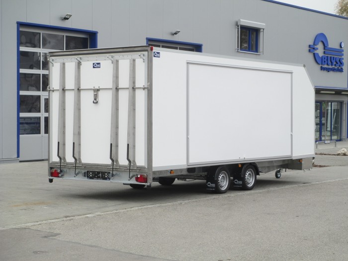 Technische DatenAnhängertyp | MONTE CARLO PRO KOFFERANHÄNGER | Gesamtgewicht | 3500kg | Nutzlast | 1760kg | Innenmaße | L: 600cm, B: 230cm, H: 200cm | Außenmaße | L: 777cm, B: 242cm, H: 266cm | Ladehöhe | 60 cm | Verzurrpunkte | Lochblech | Rahmen | Stahl geschweißt, Tauchbad feuerverzinkt | Elektrik | 13-Polig, 12V | Reifen | 195/50R13C | Achsenhersteller | AL-KO oder KNOTT | Anzahl der Achsen | 2 | Gebremste Achse | Ja | Stützrad serienmäßig | Ja | hydraulisch | kippbar | Ladeboden Alu- Lochblech- Standschienen außen | b = 75 cm, 6 - Loch- System, in der Mitte Multiplex- Holz- Boden | Ladeboden Alu- Lochblech- Standschienen | rechts und links von unten mit Alublech verkleidet | Elektrische Seilwinde | seitlich verschiebbar | Wände | Sandwich | Tür-Lademaß | B: 223cm x H: 195cm | Aerodynamik | Ja | Stoßdämpferfahrwerk | Ja + 100km/h Zulassung | Reserverad | mit Halterung | überfahrbare Heckklappe | + Alu Auffahrschienen | Seitenklappfeld | Rechts und Links |
