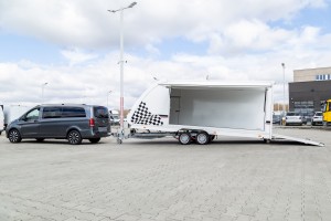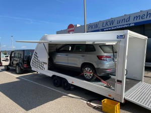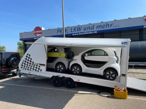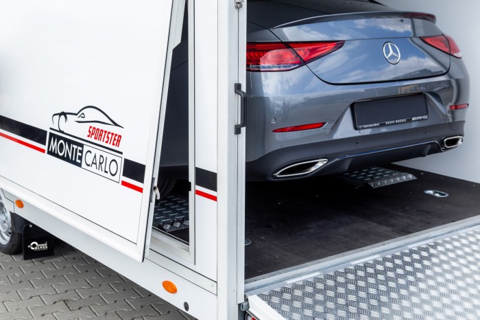Technische DatenAnhängertyp | Monte Carlo Sportster | Gesamtgewicht | 3500kg | Nutzlast | 2086kg | Innenmaße | L: 580cm, B: 230cm, H: 190cm | Ladehöhe | 64 cm | Boden | Multiplex-Holzboden | Bordwände | Sandwich | Rahmen | Stahl geschweißt, Tauchbad feuerverzinkt | Elektrik | 13-Polig, 12V | Reifen | 13 Zoll | Achsenhersteller | AL-KO oder KNOTT | Anzahl der Achsen | 2 | Gebremste Achse | Ja | Stützrad serienmäßig | Schwerlaststützrad | Airlineschienen | für optimale Ladungsicherung inkl 12 x Endbeschlag, der kann einfach an jedem beliebigen Punkt in die Schiene eingeführt werden | Heckklappe | 185 cm Lang | Seitenklappfeld | Maße: 360x145 cm | LED Leuchtstreifen | innen | Seitentür | 168x57 cm | Aerodynamik | Ja | Frontluke | Ja | Dachluke | Ja | Stoßdämpferfahrwerk | 100 km/h Zulassung |