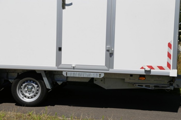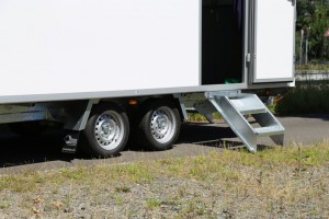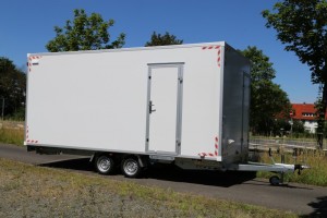 Abbildungen müssen nicht der Standard-Ausstattung entsprechen, technische Änderungen (z.B. Reifengrößen) vorbehalten.Technische DatenAnhängertyp | Office 500 Tandem | Gesamtgewicht | 2700kg | Innenmaße | L: 520cm, B: 230cm, H: 230cm | Boden | Multiplex-Holzboden 18 mm | Rahmen | Stahl geschweißt, Tauchbad feuerverzinkt | Elektrik | 13-polig, 12 V | Reifen | 195/50R10C | Achsenhersteller | AL-KO oder KNOTT | Anzahl der Achsen | 2 | Gebremste Achse | Ja | Stützrad serienmäßig | Ja | Eingangstüre Büro | in Fahrtrichtung rechts | Eingangstüre WC | bugseits | Sandwichwände | 40 mm | 2 x Wasserversorgung | Tanksystem mit Waschset und Hygienepaket ( 1 x im Büroteil, 1 x in Toilette) | Eingangstritt | Ja | Stützen | 4 Stück | Fenster | in Rückwand mit Klappläden | Kühlschrank | Ja | 2x Heizkörper | im Büroteil | 1x Heizkörper | in Toilette | Thetford C 402 – X – R Toilette | mit Revision | Möbel | Waschbeckenschrank, Kühlschrank, RTV-Schrank, Tisch, Stühle, Regal | Stromversorgung | 230 V / 16 A mit Steckdosen, 3 x LED Beleuchtung im Büroteil, 1x in Toilette | 100 km/h Zulassung | Ja | Möbel Toilette | Waschbeckenschrank, Regal, Kleiderhaken, Toilettenpapierhalter, WC Bürste, Handtuchhaken, Spiegel |