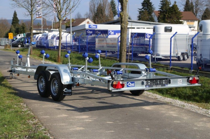 Abbildungen müssen nicht der Standard-Ausstattung entsprechen, technische Änderungen (z.B. Reifengrößen) vorbehalten. Technische DatenAnhängertyp | P2520HT | Gesamtgewicht | 2500kg | Nutzlast | 1830kg | Innenmaße | L: 900cm, B: 255cm | Rahmen | Stabile verwindungsfreie Rahmenkonstruktion vollbadfeuerverzinkt | Elektrik | 13-polig, 12V | Reifen | 185/R14C | Achsenhersteller | KNOTT Achse - stufenlos verstellbar | Anzahl der Achsen | 2 | Gebremste Achse | Ja | Stützrad serienmäßig | Ja | Stoßdämpferfahrwerk | Ja, inkl. 100 km/h Zulassung | Seilwinde | Längsverstellbar | Bugauflage | Längs- und Höhenverstellbar | Anzahl der Kielrollen | 6 hochfeste Polyurethan Kielrollen, Höhenverstellbar | Anzahl der Slipprollen | 6 hochfeste Polyurethan doppel Slipprollen | Heckleuchtenträger ausziehbar und abnehmbar | ausziehbar und abnehmbar | Begrenzungsleuchten | Ja |