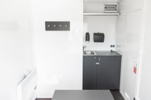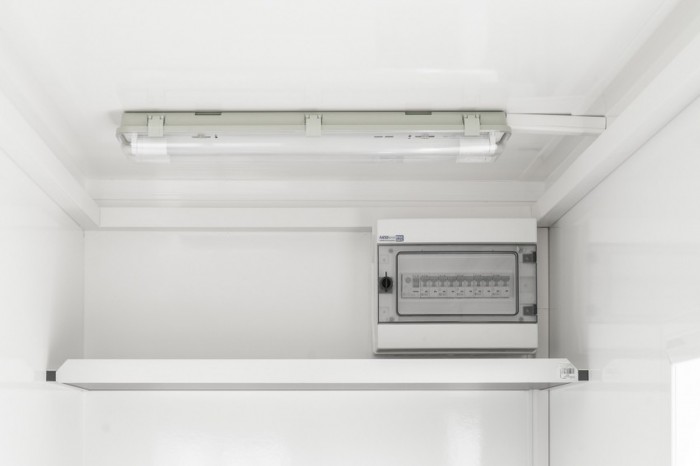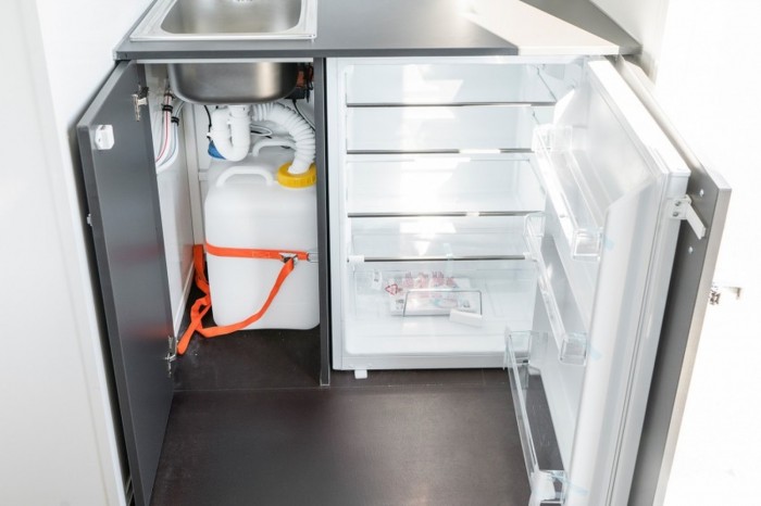 - Wasserversorgung (Boiler, Pumpe, Waschbeckenschrank)