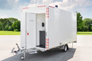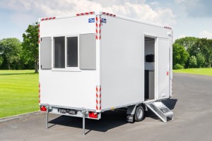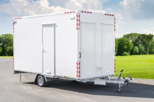 Abbildungen müssen nicht der Standard-Ausstattung entsprechen, technische Änderungen (z.B. Reifengrößen) vorbehalten. Technische Daten| Anhängertyp | OFFICE 401 MIT VERBRENNUNGSTOILETTE UND WERKZEUGRAUM | | Gesamtgewicht | 1300kg | | Innenmaße | L: 400cm, B: 200cm, H: 230cm | | Boden | Multiplexplatte 18 mm | | Rahmen | Stahlrahmen, komplett Tauchbad feuerverzinkt | | Elektrik | 13 poliger Stecker | | Reifen | 10 Zoll | | Achsenhersteller | AL-KO oder KNOTT | | Anzahl der Achsen | 1 | | Gebremste Achse | Ja | | Stützrad serienmäßig | Ja | | Eingangstüre | in Fahrtrichtung rechts | | Eingangstritt | x3 | | Schiebestützen | 4, verzinkt | | Eingangstüre Bugseits | 2 (Materialraum und WC) | | Sandwichwände | 25 mm | | Fenster | mit Klappläden im Heck | | Stromversorgung | 230 V / 16 A mit Steckdosen und Beleuchtung im Büroteil und Toilette | | Werkzeugraum | mit 3 Regalen ohne Elektroinstallation |