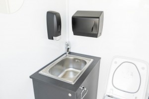 - Wasserversorgung Tanksystem, Spülbecken aus Edelstahl, Kanister 19L (im Büroteil)