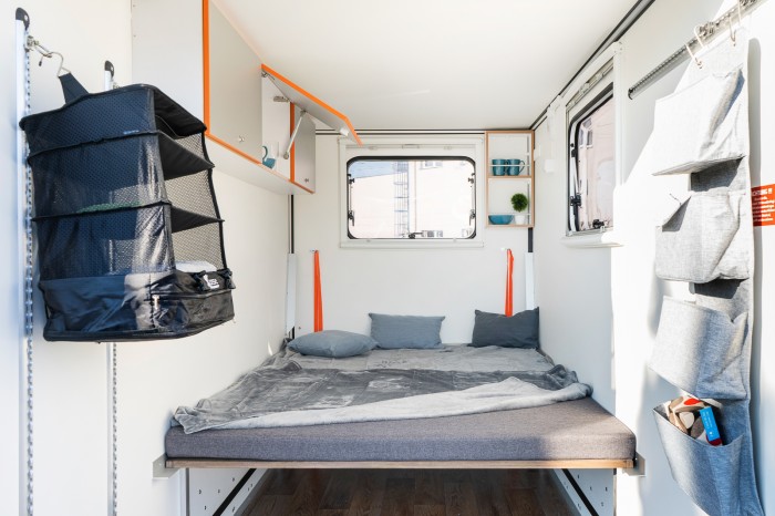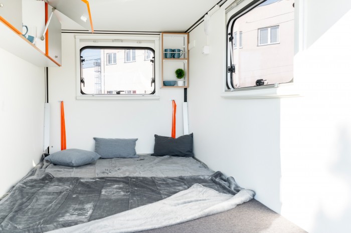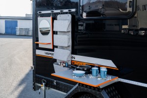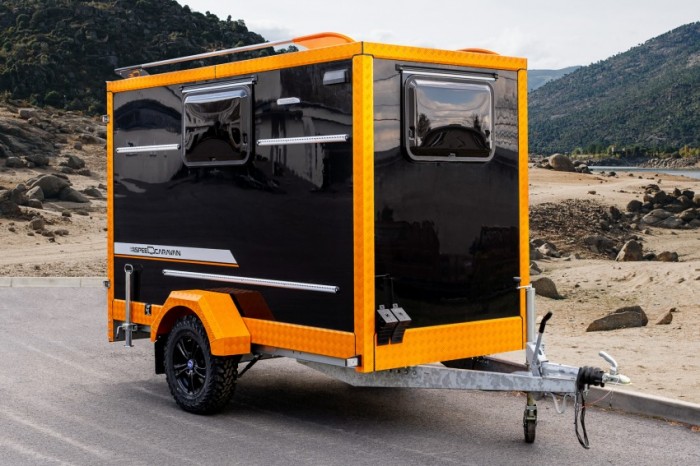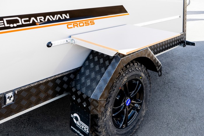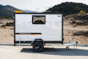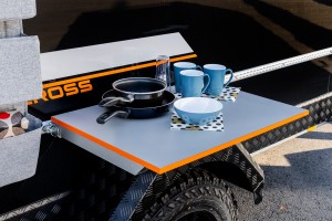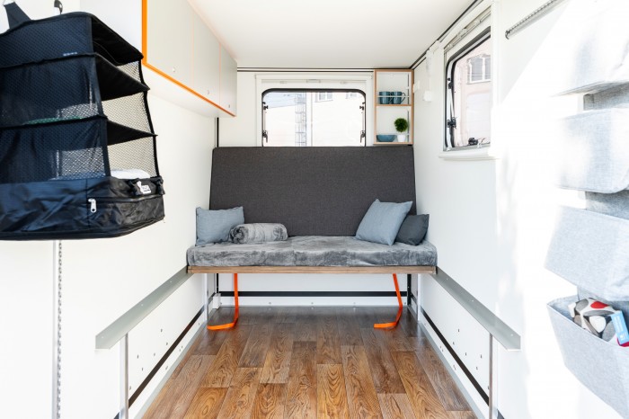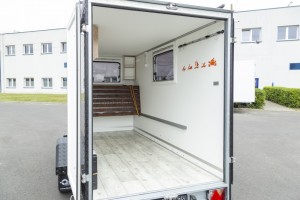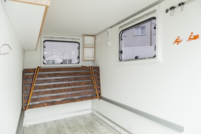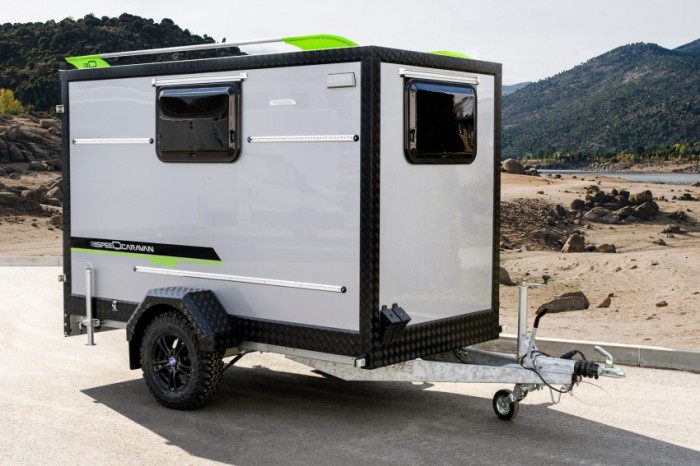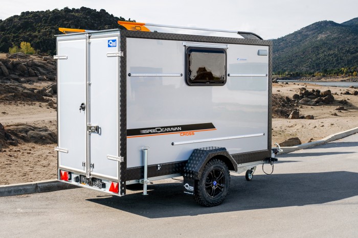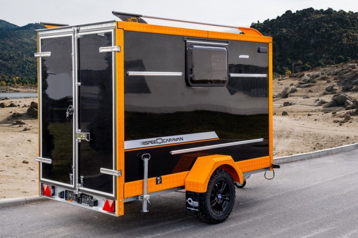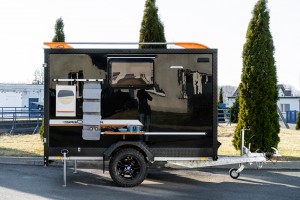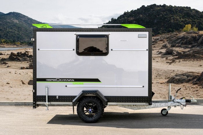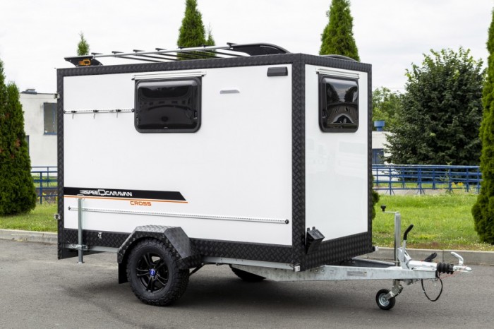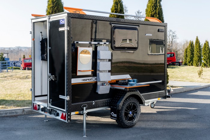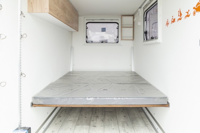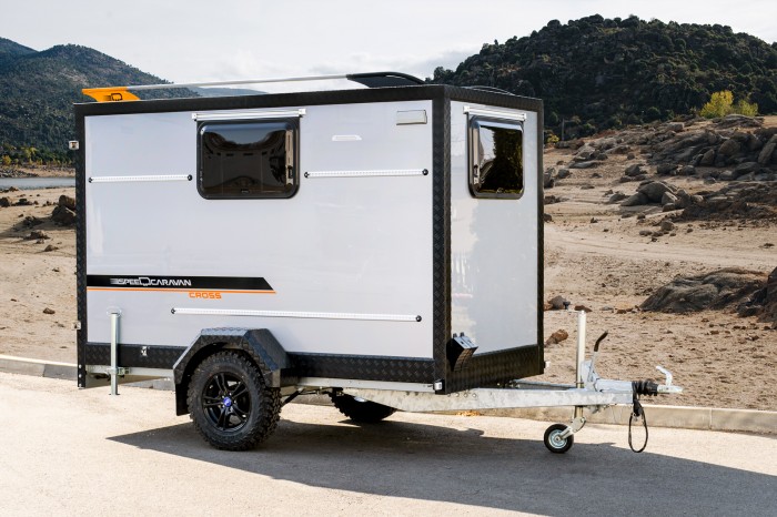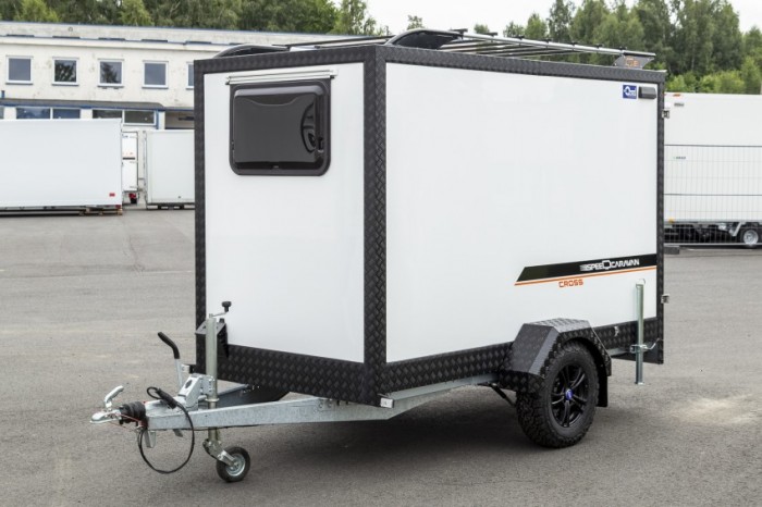 Technische Daten| Anhängertyp | Speedcaravan 320 CROSS | | Gesamtgewicht | 1300kg | | Nutzlast | 680kg | | Innenmaße | L: 300cm, B: 146cm, H: 190cm | | Außenmaße | L: 452 cm, B: 198 cm, H: 245 cm | | Boden | Multiplex-Holzboden + PVC – Bodenbelag | | Rahmen | Stahlrahmen geschweißt,geschraubt, komplett Tauchbad feuerverzinkt | | Elektrik | 13-Polig, 12V | | Reifen | 165R13 | | Achsenhersteller | AL-KO oder KNOTT | | Anzahl der Achsen | 1 | | Gebremste Achse | Ja | | Stützrad serienmäßig | Ja | | Innenbeleuchtung | LED | | Schlafplätze | 2 | | 2 Doppelglasfenster | aufstellbar mit Doppel-Rollos (vorne und seitlich) | | Schiebestützen | serienmäßig | | Liegefläche | 195x146cm, klappbar bzw. aufrollbar | | Stoßdämpferfahrwerk | inkl. 100km/h Zulassung | | kleine Regale | seitlich vom Fenster | | Wände | weiß / silber / schwarz | | Rail - Package | Ja |