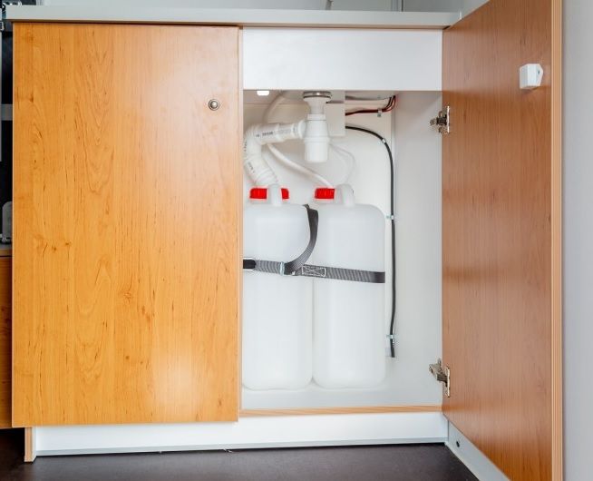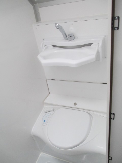 -- Heckklappe -- Toilettenraum mit Thettford Toilette und Waschbecken