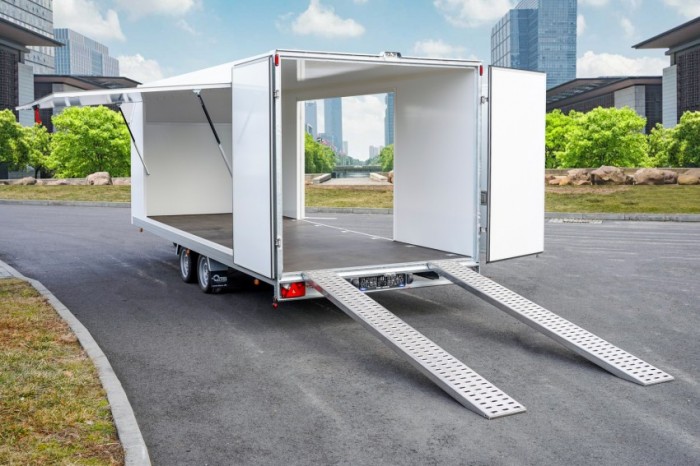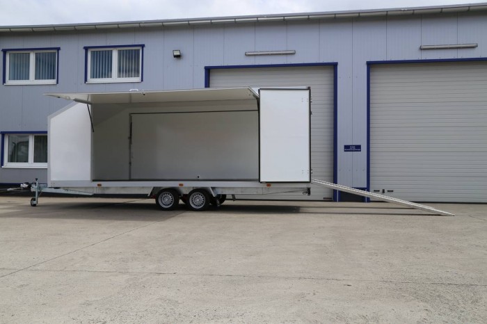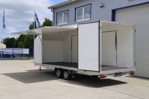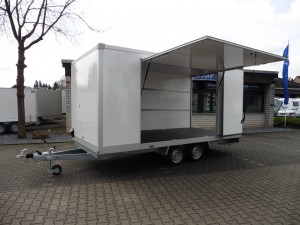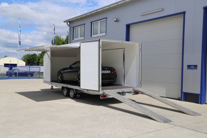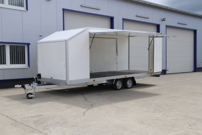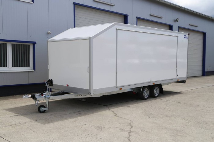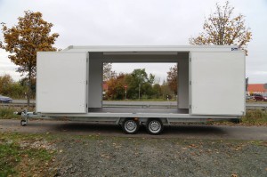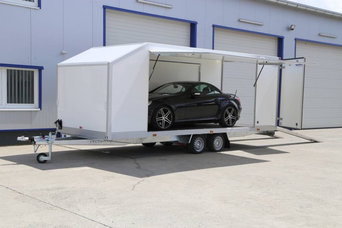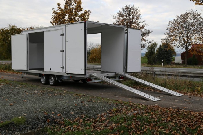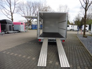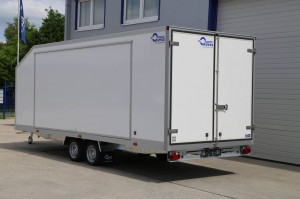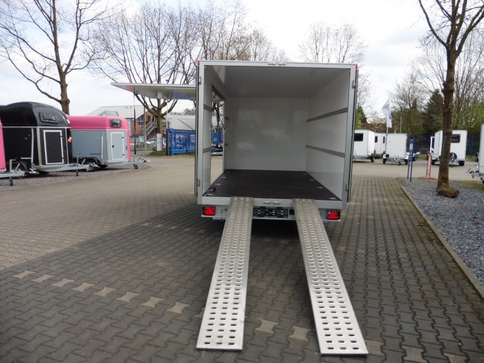 Technische DatenAnhängertyp | Speedway I Fahrzeugtransporter | Gesamtgewicht | 3500kg | Nutzlast | 2050kg | Innenmaße | L: 600cm, B: 220cm, H: 200cm | Außenmaße | L: 761cm, B: 227cm, H: 271cm | Boden | Multiplex-Holzboden | Verzurrpunkte | im Ladeboden versenkt | Bordwände | Sandwich | Rahmen | Stahl geschweißt, Tauchbad feuerverzinkt | Elektrik | 13-polig, 12V | Reifen | 195/50R13C | Achsenhersteller | AL-KO oder KNOTT | Anzahl der Achsen | 2 | Gebremste Achse | Ja | Stützrad serienmäßig | Ja / Automatikstützrad | Auffahrschienen | Alu-Auffahrschienen 300 cm lang | Flügeltüren hinten | Ja, abschließbar | Seitenklappfeld | Je Seite 1 Seitenklappfeld ca. 400 cm breit mit Gasdruckfedersystem und Zusatzsicherung, abschließbar | Stoßdämpferfahrwerk | Ja, + 100 km/h Zulassung |