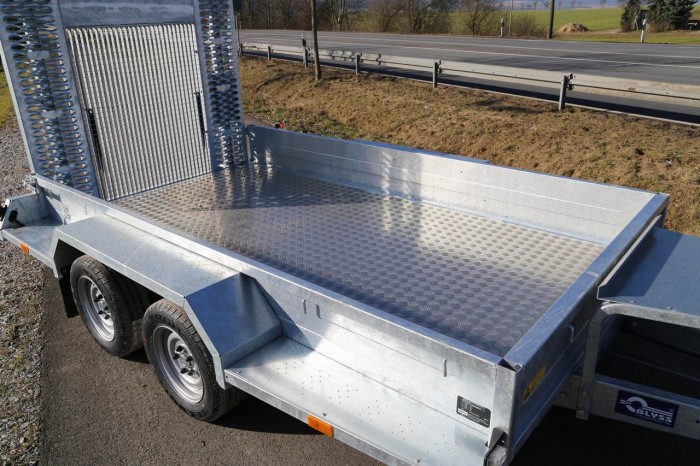 Technische DatenAnhängertyp | Saris Magnum Explorer 300 Minibagger | Gesamtgewicht | 3000kg | Nutzlast | 2291kg | Innenmaße | L: 306cm, B: 168cm, H: 30cm | Ladehöhe | ca. 39 cm | Boden | Alu- Riffelblechboden | Verzurrpunkte | 12 überdimensionierte, bis 1000daN belastbare Zurranker im Bodenrahmenprofil eingelassen und 10 geschweißte Netzhaken an der Kastenaußenkante, auch als zusätzliche Zurrhaken nutzbar | Bordwände | Stahl | Rahmen | Stahlrahmen geschweißt komplett feuerverzinkt | Elektrik | 13-polig, 12V | Reifen | 195/50R13C | Achsenhersteller | AL-KO oder KNOTT | Anzahl der Achsen | 2 | Gebremste Achse | Ja | Stützrad serienmäßig | Automatikstützrad | Stoßdämpferfahrwerk | Nein | Begehbare Stahlkotflügel | Ja | Auffahrrampen | Zwei stufenlos verstellbar, je 140x36cm mit soliden Verriegelungen + Gitter zwischen den Auffahrschienen | Schaufelablage | Ja |