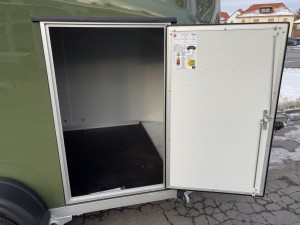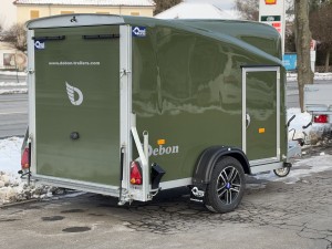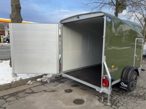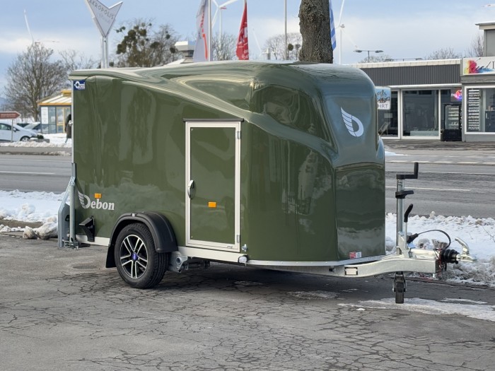 Technische DatenAnhängertyp | Debon Cargo 1300 | Gesamtgewicht | 1300kg | Nutzlast | 855kg | Innenmaße | L: 300cm, B: 150cm, H: 165cm | Außenmaße | L: 425cm, B: 202cm, H: 202cm | Boden | Multiplex-Holzboden, Boden in Bugrundung Stahl | Ladehöhe | ca. 34cm | Verzurrpunkte | 4 Zurrösen klappbar innen seitlich auf Boden aufgeschraubt | Rahmen | stabiler verschweißter und tauchbad-feuerverzinkter Rahmen | Elektrik | 12V - Stecker 13 polig - Rückfahrleuchte | Reifen | 14 Zoll | Achsenhersteller | KNOTT | Anzahl der Achsen | 1 | Gebremste Achse | Ja | Stützrad serienmäßig | serienmäßig zentral montiertes Automatikstützrad | Vollpoly | in aerodynamischer Form, Olivgrün | Pullmann-Fahrwerk | mit Schraubenfedern und Stoßdämpfern (100 km/h Bescheinigung ab Werk) | Auflaufeinrichtung | mit Rückfahrautomatik und Feststellbremse | Heckrampe Aluminium | rutschhemmend innen, dreh-/schwenkbar, mit Gashebern | Kotflügel | Kunststoff, schwarz | Innenlicht | Ja | Rückleuchteneinheiten | geschützt in Seitenstrebe montiert | Seitentür | in Fahrtrichtung rechts | Lichte Maße der Seitentür | 102 x 61 cm |