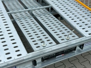 Technische DatenAnhängertyp | Jupiter TX Edition | Gesamtgewicht | 2700kg | Nutzlast | 2160kg | Innenmaße | L: 400cm, B: 210cm | Außenmaße | L: 554cm, B: 217cm, H: 76cm | Boden | Lochblech Stahl verzinkt | Ladehöhe | ca. 70cm | Verzurrpunkte | Lochblech | Rahmen | Stahl geschweißt, Tauchbad feuerverzinkt | Elektrik | 13-polig, 12 V | Reifen | 195/50R13C | Achsenhersteller | AL-KO oder KNOTT | Anzahl der Achsen | 2 | Gebremste Achse | Ja | Stützrad serienmäßig | Ja | Auffahrschienen serienmäßig | 200 cm | Stoßdämpferfahrwerk | + 100km/h Bestätigung | Unterlegkeile | 2 | Reserverad | Nein |