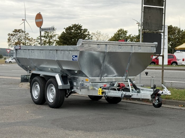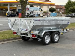 Technische DatenAnhängertyp | MK3530EPP | Gesamtgewicht | 3500kg | Nutzlast | 2520kg | Innenmaße | L: 302cm, B: 180cm, H: 60cm | Verzurrpunkte | in Mulde versenkt | Rahmen | Tauchbad feuerverzinkt | Reifen | 185R14C | Achsenhersteller | AL-KO oder KNOTT | Anzahl der Achsen | 2 | Gebremste Achse | Ja | Stützrad serienmäßig | Ja | Kippzylinder | 3-stufiger | Stahlkotflügel | Ja | Kugelkopfkupplung | Ja | Elektropumpe | Ja | Stahlrampen | 1 Paar |