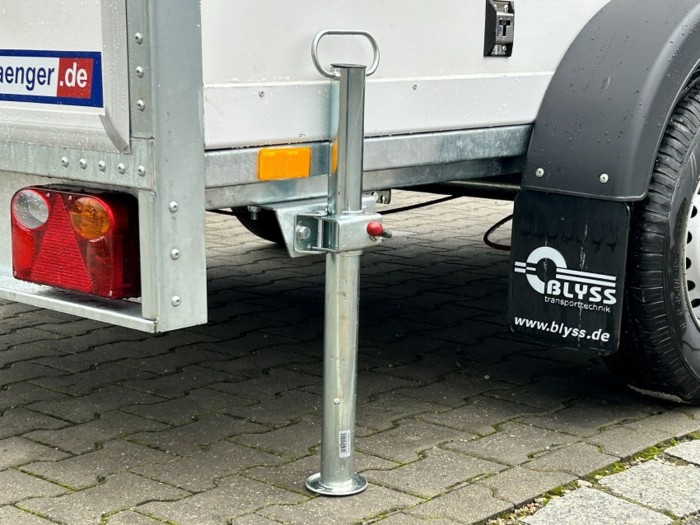 Technische Daten| Anhängertyp | FR2730/180HTL Seitentür | | Gesamtgewicht | 2700kg | | Nutzlast | 2117kg | | Innenmaße | L: 305cm, B: 150cm, H: 180cm | | Außenmaße | L: 448cm, B: 205cm, H: 241cm | | Ladehöhe | 52 cm | | Boden | Multiplex-Holzboden | | Verzurrpunkte | je Seite 3 | | Bordwände | Sandwich | | Rahmen | Stahlrahmen geschweißt, komplett Tauchbad feuerverzinkt | | Elektrik | 13-Polig, 12V | | Reifen | 165R13C | | Achsenhersteller | AL-KO oder KNOTT | | Anzahl der Achsen | 2 | | Gebremste Achse | Ja | | Stützrad serienmäßig | Ja | | Doppelflügeltür | mit Drehstangenverschluss, abschließbar | | Tür-Lademaß | B: 148cm, H: 177cm | | Seitentür | vorne rechts in Fahrtrichtung | | Unterlegkeile | 2 | | Stoßdämpferfahrwerk | Ja + 100km/h Zulassung | | Heckstützen | Ja |