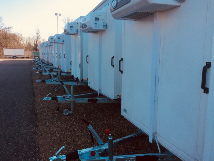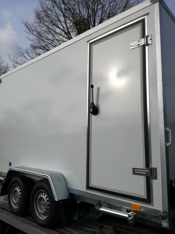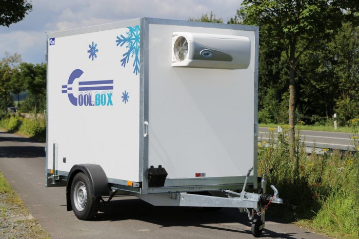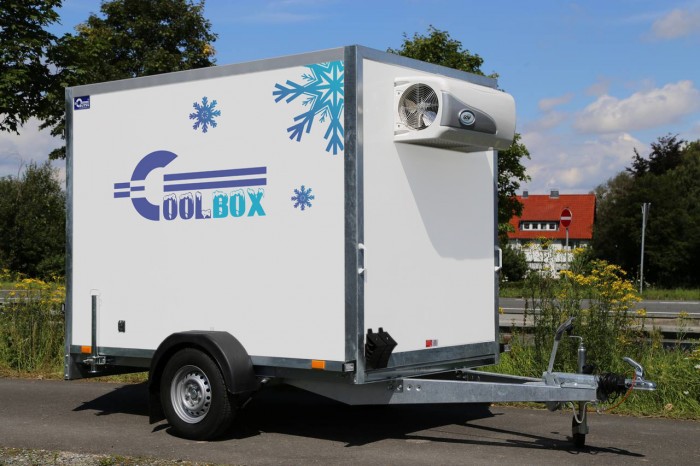 Technische DatenAnhängertyp | Kühlkofferanhänger FK1325/180H | Gesamtgewicht | 1300kg | Nutzlast | 700kg | Innenmaße | L: 250cm, B: 150cm, H: 180cm | Außenmaße | L: 422cm, B: 208cm, H: 241cm | Ladehöhe | 55 cm | Boden | Multiplexplatte mit darunterliegender Sandwichplatte | Rahmen | Stahl geschweißt, Tauchbad feuerverzinkt | Elektrik | 13-Polig, 12V | Achsenhersteller | AL-KO oder KNOTT | Anzahl der Achsen | 1 | Gebremste Achse | Ja | Stützrad serienmäßig | Ja | Sandwichwände | 60 mm dick | Flügeltüren hinten | mit Drehstangenverschluss aus Edelstahl | GOVI Kühlanlage Arktik 1600N | Ja | Stationäres Anhängerkühlgerät | Ja | Kälteleistung 1600 Watt | Ja | Elektronische Steuerung mit Abtauautomatik | Ja | Verschließbares Bedienteil | Ja | Innenbeleuchtung | Ja | Stoßdämpferfahrwerk | + 100 km/h Bestätigung |