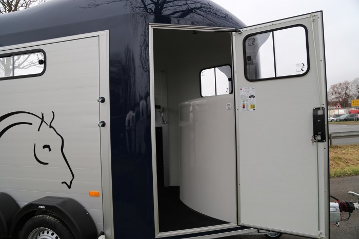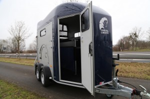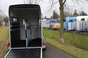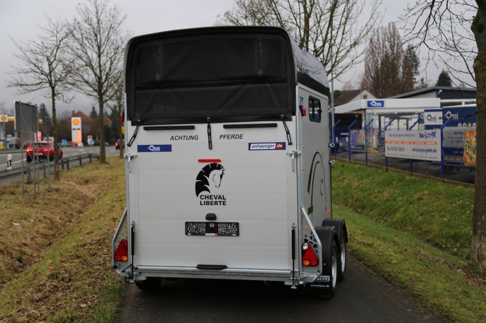 Technische DatenAnhängertyp | Cheval Liberte Gold 3 | Gesamtgewicht | 2000kg | Nutzlast | ca. 1175kg | Innenmaße | ca. L: 320cm, B: 167cm, H: 235cm | Außenmaße | ca. L: 443cm, B: 215cm, H: 270cm | Elektrik | 13 polig / mit Rückfahrscheinwerfer | Reifen | 185/65R14 | Gebremste Achse | Serie | Anzahl der Achsen | 2 | Rahmen | massives feuerverzinktes Rahmenprofil | Boden | Aluminium | Stützrad serienmäßig | Automatikstützrad | Aufbau | Eloxierte Aluminium Wände | Haube | Polyesterhaube mit Verstärkung | Aufstellfenster | 2 Getönte und vergitterte Aufstellfenster | Fahrwerk | Pullman 2 | Heckrampe | Heckklappe dreh und schwenkbar mit Planenrollo oben | Einstiegstür | rechts | Panikentriegelung | Ja | Trittschutz und Seitenpolsterung | Ja | 4 Verstellbare Boxenstangen | mit Mitteltrennwand | Innenlicht | mit Schalter | Sattelkammer | Ja |