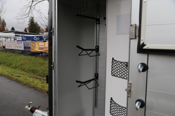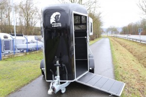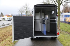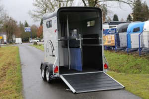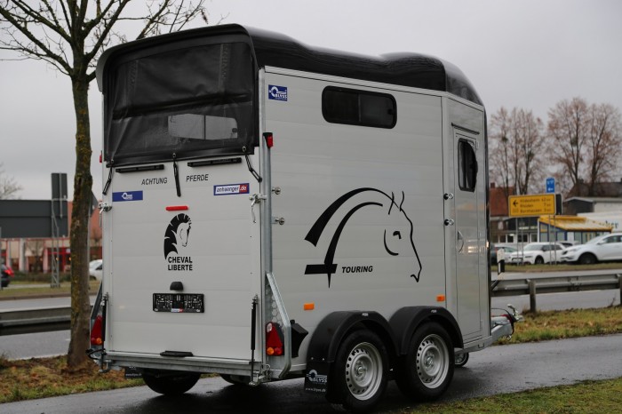 Technische DatenAnhängertyp | Cheval Liberte Touring Country | Gesamtgewicht | 2600kg | Nutzlast | ca. 1775kg | Innenmaße | ca. L: 320cm, B: 167cm, H: 235cm | Außenmaße | ca. L: 443cm, B: 215cm, H: 270cm | Elektrik | 13 polig / mit Rückfahrscheinwerfer | Reifen | 185/65R14 | Gebremste Achse | Serie | Anzahl der Achsen | 2 | Rahmen | massives feuerverzinktes Rahmenprofil | Boden | Aluminium | Stützrad serienmäßig | Automatikstützrad | Aufbau | Eloxierte Aluminium Wände | Haube | Polyesterhaube mit Verstärkung | Fenster | 2 Schiebefenster mit Windabweiser vorne | Fahrwerk | Pullman 2 | Heckrampe | Heckklappe dreh und schwenkbar mit Planenrollo oben | Breiter Frontausstieg | mit Seitenklappe oben | hohe Einstiegstür | Ja | Panikentriegelung | Ja | Trittschutz und Seitenpolsterung | Ja | Aluminium bewegliche Mitteltrennwand | mit Hengstgitter und ABS-Sichtschutz | 4 Verstellbare Boxenstangen | Ja | Innenlicht | mit Schalter |