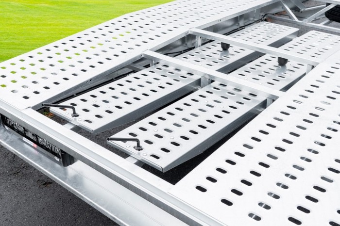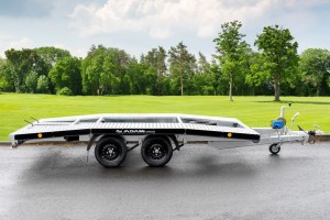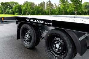 Technische Daten| Anhängertyp | Adam Deluxe Stahlfelge | | Gesamtgewicht | 2700kg | | Nutzlast | 2074kg | | Innenmaße | L: 400cm, B: 210cm | | Außenmaße | L: 560cm, B: 217cm, H: 76cm | | Boden | Standschienen, Lochblech Stahl | | Ladehöhe | 66cm | | Verzurrpunkte | Lochblech | | Rahmen | Stahlrahmen geschweißt, feuerverzinkt+ Zinnklar | | Elektrik | 13-Polig, 12V | | Reifen | 195 50 R13C, schwarze Stahlfelge | | Achsenhersteller | AL-KO oder KNOTT | | Anzahl der Achsen | 2 | | Gebremste Achse | Ja | | Stützrad serienmäßig | Ja | | Reserverad | Ja, mit schwarzer Stahlfelge | | Seilwinde | Ja | | Auffahrschienen aus Stahl | 200cm | | Stoßdämpferfahrwerk | Ja + 100km/h Zulassung |